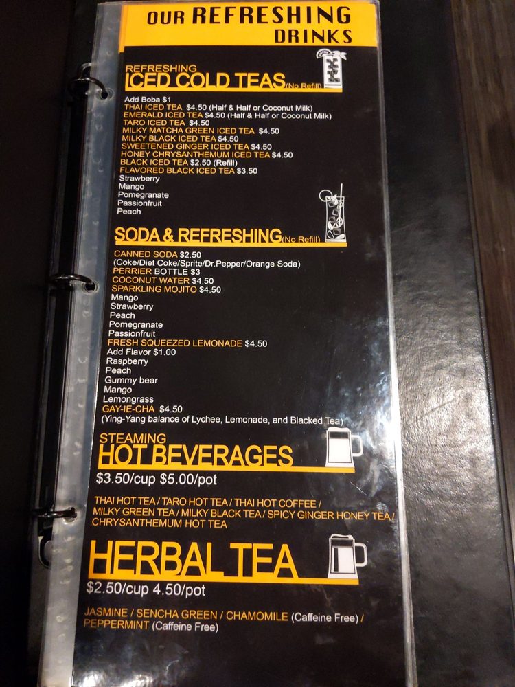 Introducing the menu at The Asian Bistro in San Diego, a Thai Fusion restaurant offering a diverse selection of dishes. The menu boasts flavorful appetizers like Thai-style E-Sarn Sausage and Chicken Satay, along with hearty soups such as Wonton Soup and a variety of succulent curries. Noodle enthusiasts can indulge in Phad Thai and Pad See Ew. Don't miss out on their delicious Coconut Ice Cream for dessert. With a reputation for being open late until 12:30am, The Asian Bistro caters to night owls and foodies alike. With rave reviews praising the authenticity and taste of the food, this spot is a must-visit for Asian cuisine lovers. From prompt service to a welcoming atmosphere, this restaurant offers a delightful dining experience worth revisiting. Explore the diverse menu offerings and savor the unique flavors at The Asian Bistro.